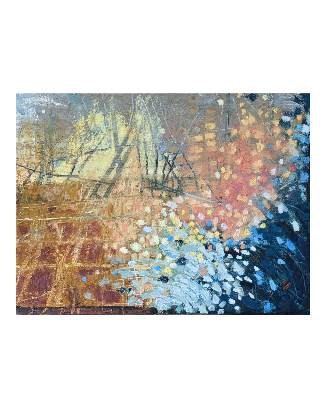 Oil and oil pigment sticks on canvas.